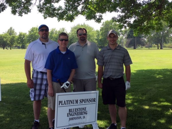 Bluestone Engineering was proud to be a sponsor of the 2015 Divots for Dimples golf outing for Mentor Iowa. Jason Zagar (VP|Marketing/Technology) currently serves on the board at Mentor Iowa and was thrilled to see the record turnout for this event. Pictured (Jason Zagar (Bluestone), Kevin Jones (Graybar), Nick Ditolla (Graybar) and David Bjerke (Corning Optical Communications).