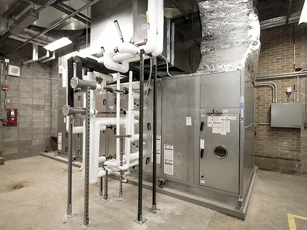 We installed a 96% efficient boiler with modulating turn down ratios to match the building’s heating needs. To create more space for the installation of new ductwork, ceiling heights were lowered, which also required lights and data cabling to be lowered. Our design utilized all new LED lighting, providing superb energy efficiency. Thermaduct was installed as a weather resistant and energy efficient duct work for the Roof Top Units. Web-based controls allows the boilers to be monitored remotely.