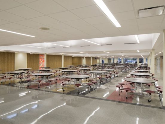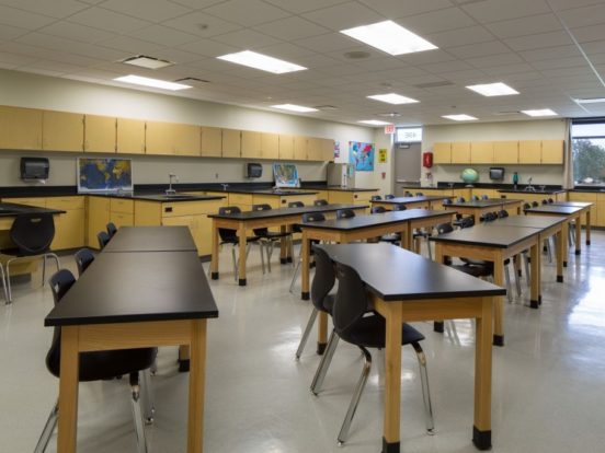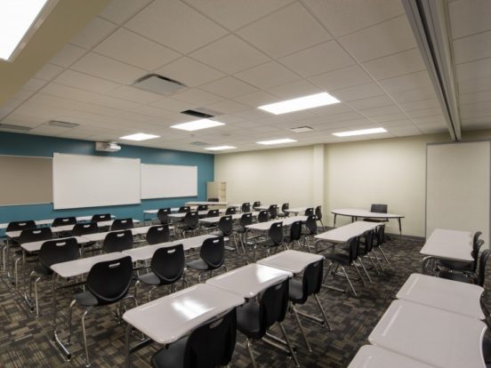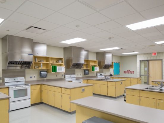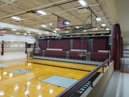 To overcome these challenges, we meticulously evaluated various HVAC system options and implemented a hydronic system with direct digital controls and high-efficiency boilers. Stormwater drainage was upgraded to meet code requirements, and outdated electrical distribution equipment was replaced to improve capacity and reliability. A new technology cabling infrastructure was designed, providing complete wireless coverage and enhancing security with monitored, locking classroom doors and a redesigned safe entrance.