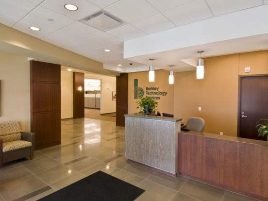When Berkley Technology Services expanded into a 90,000-square-foot, two-story building in Des Moines, KEDbluestone was tasked with creating an open-plan office space that could support high-density workstations without the use of power poles. The challenge included developing a flexible, efficient cabling pathway for modular workstations and accommodating increased occupant loads with the existing HVAC system.