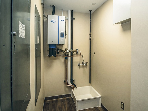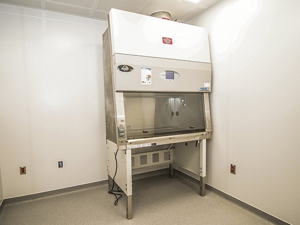 To address cleanliness requirements, we installed a variable speed condensing unit that permitted year-round air conditioning, a HEPA-approved exhaust fan for the fume hood, a compact humidifier located in the janitor’s closet and flat, washable lenses in the lighting. All equipment met NFPA99 standards. We also rerouted plumbing out of the cleanroom suite ceiling, which was sealed for pressurization and control contamination, for easier access.