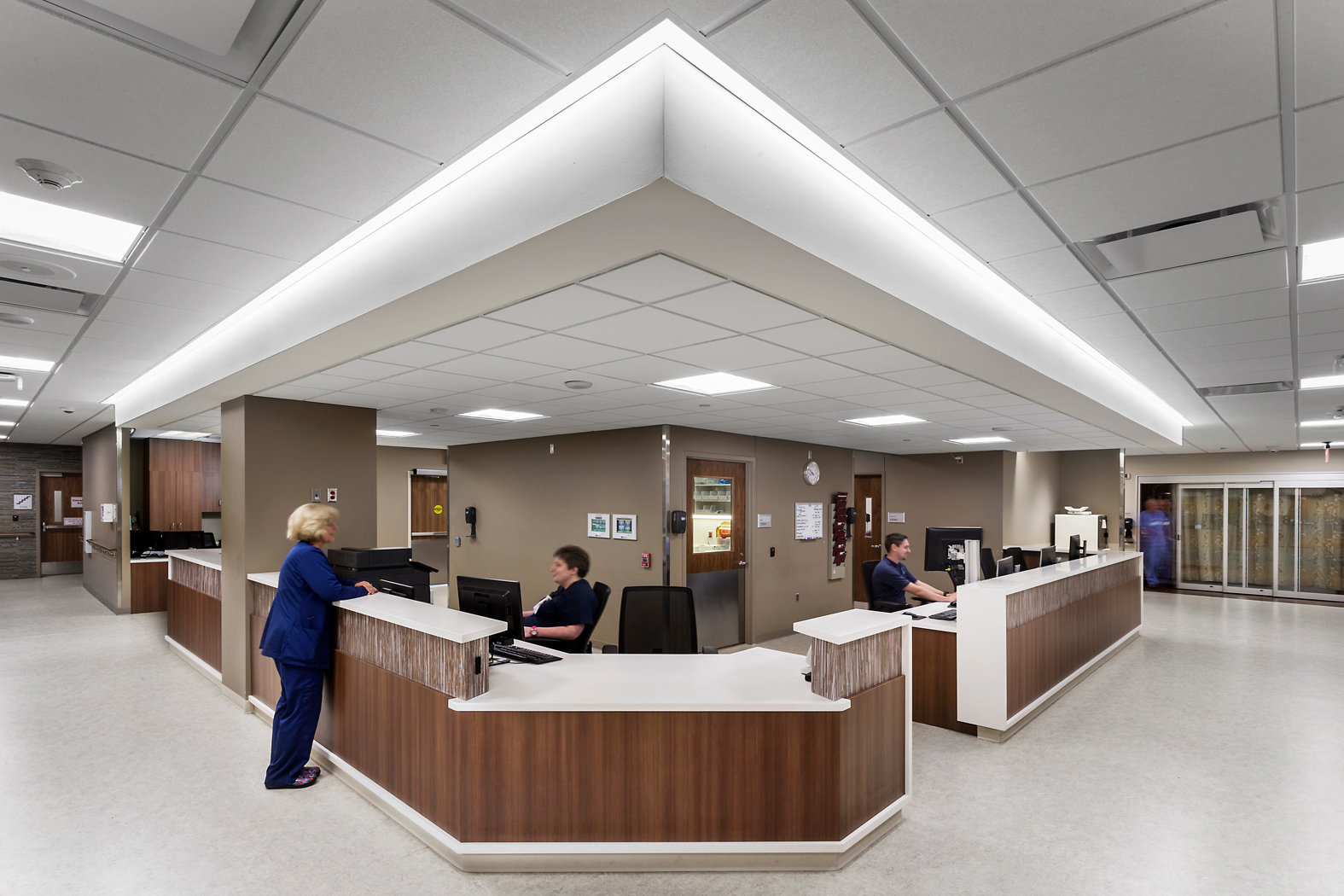 Detailed planning and coordination with the Construction Manager and the Owner were essential to maintaining hospital operations throughout the duration of the project. The two-story addition wrapped around a large portion of the west and north face of the hospital, housing twenty-five inpatient beds (OB, ICU and Med-Surg), the emergency department, laboratory, receiving/loading dock, business office, and new main entrance. Significant phasing efforts were also required due to upgrades associated with the MEP infrastructure and the location being a critical access hospital.