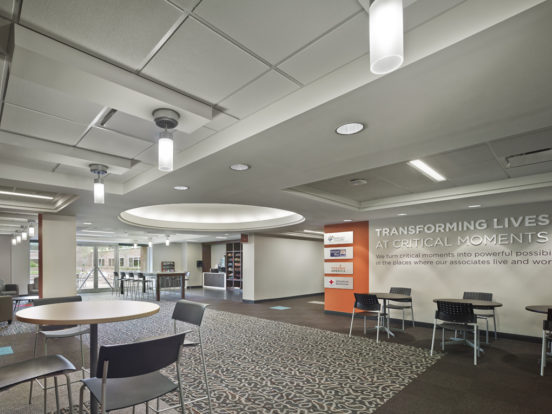 KEDbluestone designed a phased renovation plan that allowed for continuous operations while enhancing the building’s functionality. A new chilled water/hot water VAV system replaced the HVAC system, along with extensive upgrades to building automation. The team installed a new lighting system with programmable controls and daylight harvesting, modernized the electrical distribution, and incorporated integrated lighting and A/V controls in the conference center. The renovations also included a complete refresh of network, CATV, access control, and CCTV systems, delivering a fully modernized and efficient workspace.