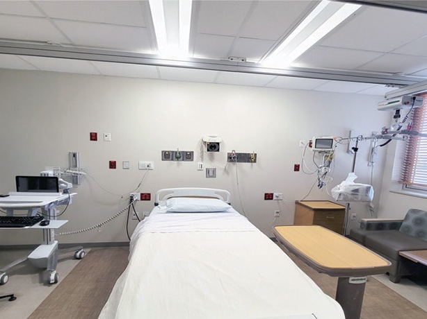 OSF St. Anthony Medical Center was in need of more intensive care unit (ICU) rooms in order to meet demand, as well as a dedicated burn unit. The hospital decided they wanted to convert a section of their existing, standard patient treatment rooms into new ICU rooms. To make this conversion possible, each room needed a new private attached restroom, room layout reconfigurations, and system upgrades to support the more complex hospital spaces.
