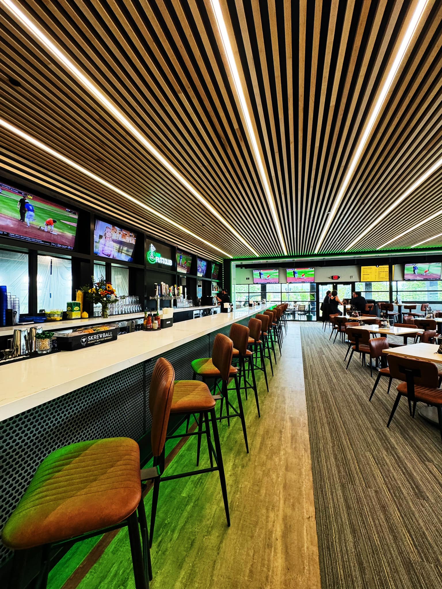 The client envisioned bringing a vibrant entertainment hub to the local community by constructing a modern mini golf course that includes food and drink services. This project was a brand-new building, requiring all around MEP services. The project had a tight budget exacerbated by the technological demands as well as difficulties with coordination of LED strip and accent lighting within the wood slat ceiling.