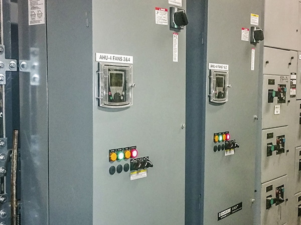 We replaced the existing air-handler with a new 30,000 cfm variable-volume unit with a quad supply fan arrangement and four variable frequency drives (VFDs). That set-up allows the hospital to modulate the fans to meet the strict temperature and humidity requirements of the surgical center, providing better efficiency and overall control. Our contractors worked around the clock over a three-day weekend to install the new unit so surgery could commence on schedule the following Monday morning.