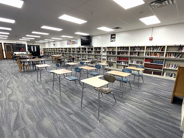 We were able to re-use the school’s existing roof curbs, which are raised frames that are designed to support roof-mounted equipment and provide shelter and stability between equipment and the structural opening in the roof. This helped save on project costs and minimized construction. We designed all new lighting and HVAC systems for the school, as well as replaced all of the old, lined ductwork. As a result, Midland High School now has modernized systems that provide temperature-controlled spaces and ideal lighting for learning environments.