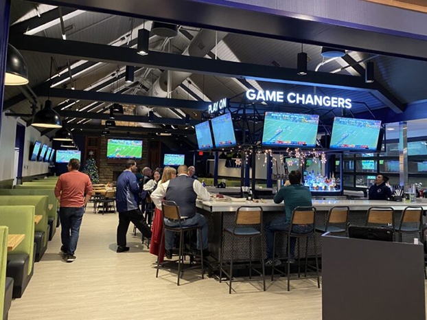 BigShots Golf in Akron, Ohio was unique in that the owner wanted to build on an existing country club, by turning the club’s existing restaurant and driving range building into a new BigShots Golf facility. This required additional coordination and planning in order to design systems that would both fit the existing structure and the complex franchise system requirements.