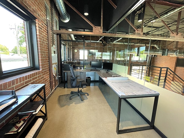 We designed radiant-floor heating for added comfort in the space. All new MEP/FP systems were designed for the building after determining that the existing systems wouldn’t be viable. The office also required all new water service and sanitary, as the site didn’t have this previously. As a result, the Aupperle office was able to keep all of the historic, unique elements of the electrical distribution center while having all new MEP/FP systems for modern-day comforts.