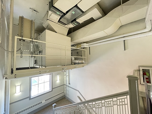 New motors were ordered, which allowed the older AHUs to support the new VAV system. Prior to the project, there were only 3 zones for the whole 2nd floor, but with the conversion to the VAV system, the floor now has 10 zones, greatly improving temperature control and comfort. We also added chilled water coils and pumps, improving functionality. As a result, the school now has an energy-efficient system, improved temperatures for student and staff comfort, and greater system control.